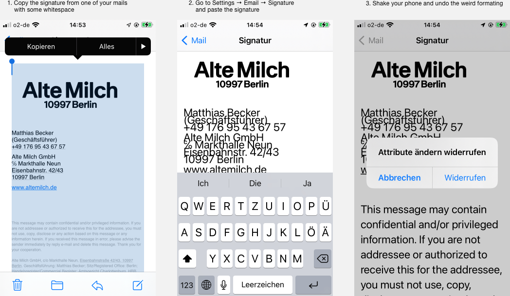 This message may contain confidential and/or privileged information. If you are not addressee or authorized to receive this for the addressee, you must not use, copy, disclose or any action based on this message or any information herein. If you received this message in error, please advise the sender immediately by reply e-mail and delete this message. Thank you for your cooperation. Alte Milch GmbH, c/o Markthalle Neun, Eisenbahnstraße 42/43, 10997 Berlin. Geschäftsführung: Matthias Becker; Sitz/Registered Office: Berlin; Handelsregister/Commercial Register: Amtsgericht Charlottenburg, HRB 171687 B